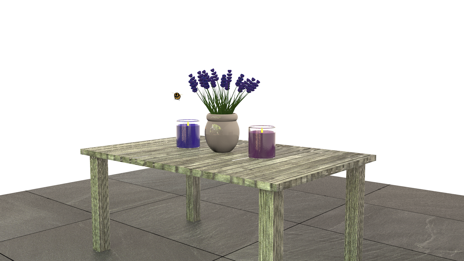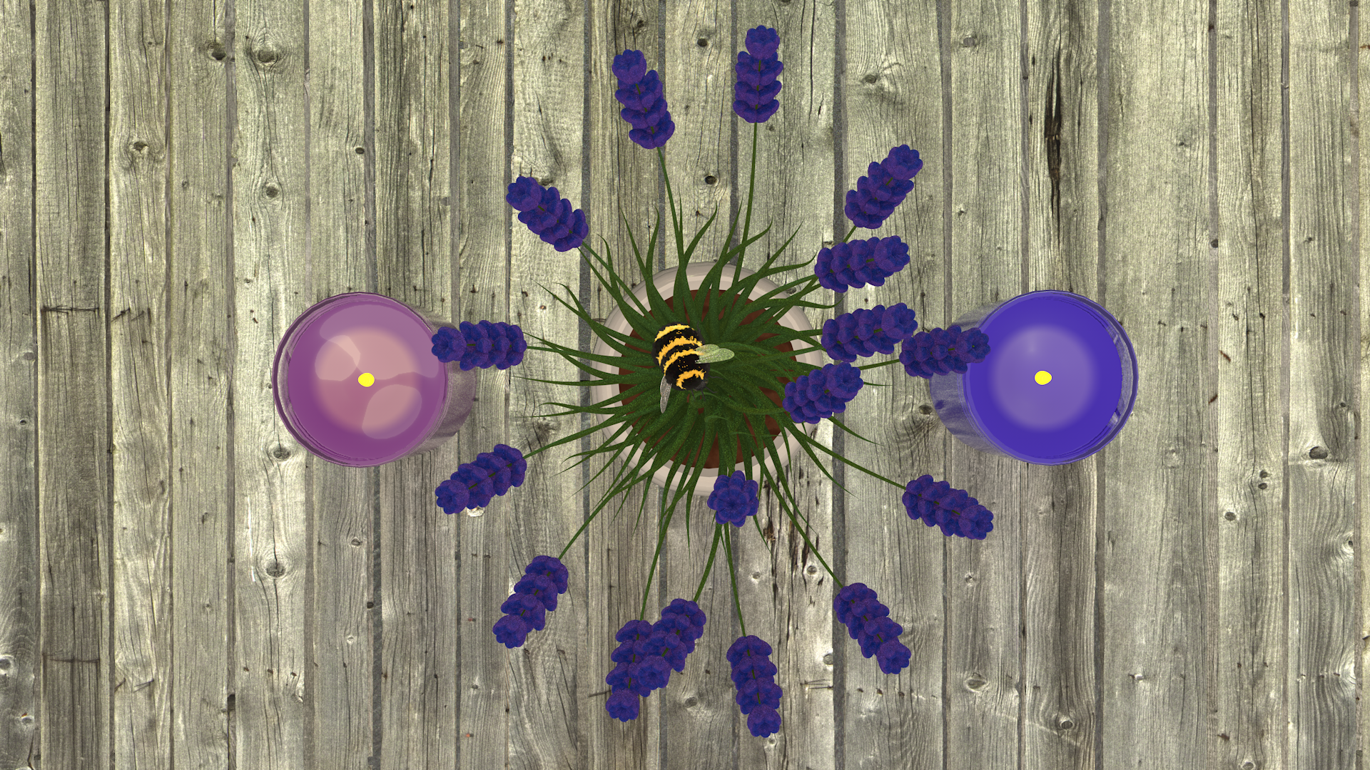 Flowers, and bees and candles swirling around the room in a happy little scene.