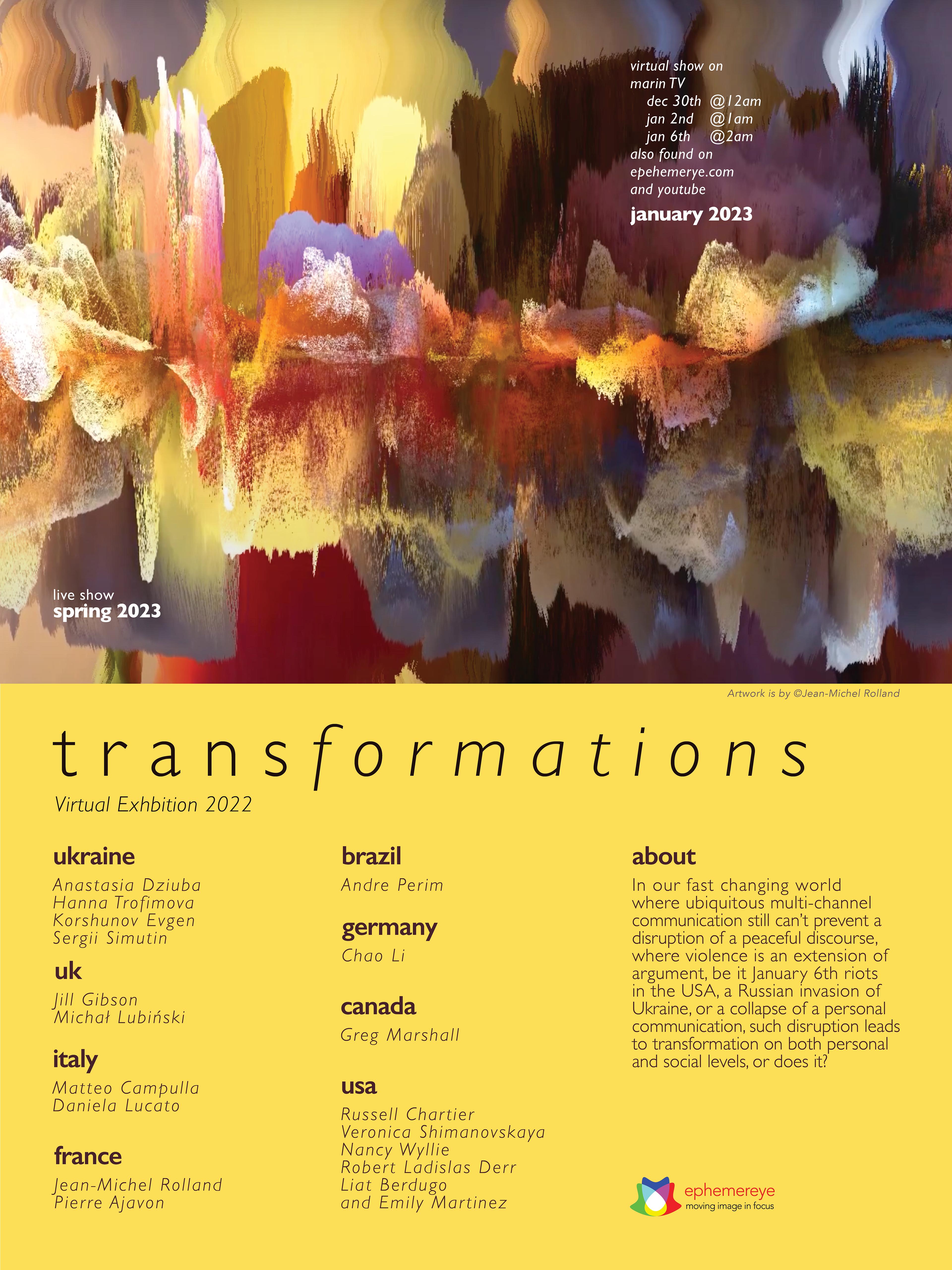A social media campaign for the ephemereye art show "transformations". I applied the visual identity I created for the campaign and previous brand elements to banners, posters, and videos.
