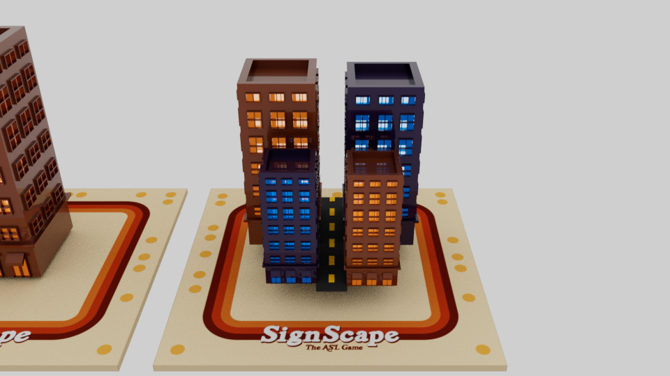 SignScape is an immersive AR board game that combines learning and entertainment. Users will complete a series of mini-games that will help build your ASL vocabulary. The cards, grey/black board, and the AR glasses are physical, but the city and objects (such as the car) are digital and seen though the AR glasses.